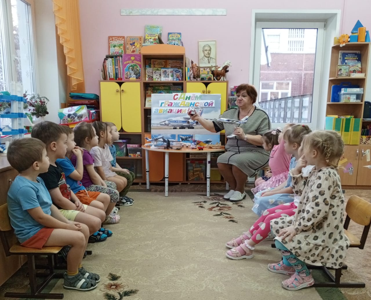 Коллектив дошкольного учреждения поставил перед собой цель: приобщить детей к авиационным традициям нашего района, воспитывать уважение к людям авиационных профессий, желание быть похожим на своих родителей и посвятить свою жизнь авиации и авиастроению, сформировать представления о значимости и ценности труда авиастроителя, через углубленное изучение профессий.