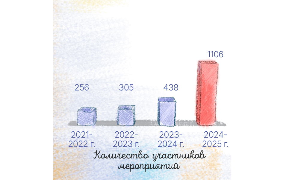 В рамках проекта «Грани выбора» в 2024-2025 учебном году проведено 14 межрегиональных онлайн-мероприятий, в которых участвовало: